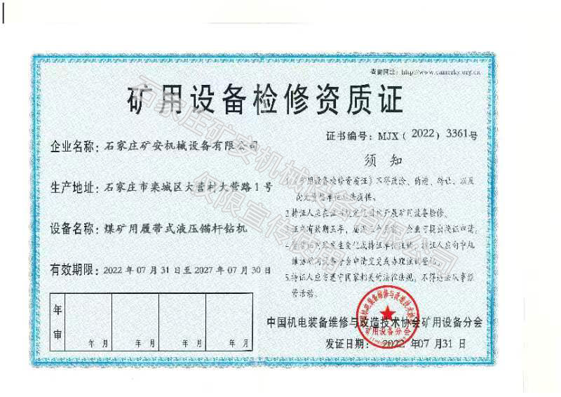 石家莊礦安機(jī)械設(shè)備有限公司成立于2011年3月,公司位于風(fēng)景優(yōu)美、科技發(fā)達(dá)、交通便利的石家莊市欒城區(qū),是一家專注生產(chǎn)煤礦井下支護(hù)機(jī)具(錨桿鉆機(jī))和安全鉆機(jī)(防突,架柱等)及氣動(dòng)隔膜泵等礦用機(jī)械設(shè)備的********,是國內(nèi)煤礦機(jī)械裝備的生產(chǎn)商和服務(wù)商,根據(jù)用戶需求提供井下適用的鉆機(jī)施工解決方案。公司致力于打造研發(fā)、制造、銷售、服務(wù)為一體的現(xiàn)代化企業(yè),全心全意為煤礦生產(chǎn)保駕護(hù)航。 ? 公司建有裝配車間、機(jī)加車間和調(diào)試車間,擁有嚴(yán)格的質(zhì)量控制體系、先進(jìn)的產(chǎn)品開發(fā)系統(tǒng)、完善的試驗(yàn)檢測設(shè)施、良好的售后服務(wù)保障。先后與中煤科工集團(tuán)沈陽研究院、西安研究院、太原理工大學(xué)、燕山大學(xué)等知名院校建立了緊密的合作關(guān)系。 ? 公司產(chǎn)品主要銷往山西、陜西、山東、內(nèi)蒙古、黑龍江、云南、貴州等七十多個(gè)礦區(qū)和地方煤礦,擁有一支成熟的售后技術(shù)團(tuán)隊(duì),并且和中煤集團(tuán)、華電煤業(yè)集團(tuán)、華潤煤業(yè)集團(tuán)、潞安集團(tuán)、山西焦煤、淮北礦業(yè)等國內(nèi)知名企業(yè)達(dá)成長期合作關(guān)系。 ? 公司始終秉持“讓煤礦生產(chǎn)更安全”的發(fā)展使命,力求誠信與創(chuàng)新,追求卓越與完美,深知“實(shí)實(shí)在在、心無旁騖做實(shí)業(yè)”,這才是本分!石家莊礦安機(jī)械設(shè)備有限公司愿與您攜手共進(jìn),共同發(fā)展!為客戶創(chuàng)造價(jià)值,提供優(yōu)質(zhì)的產(chǎn)品和*佳的服務(wù)是我們永無止境的理念!